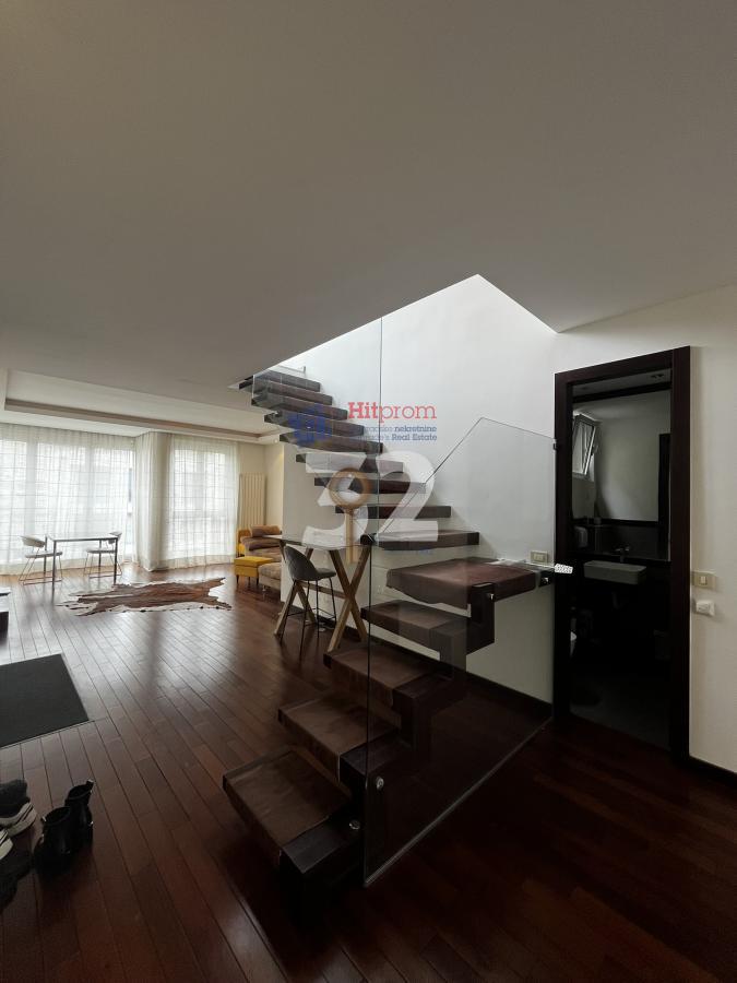 Opis: Izdaje se komforan dupleks stan na dve etaže, ukupne površine 170 m² , sa funkcionalnim rasporedom i odličnim sadržajem.