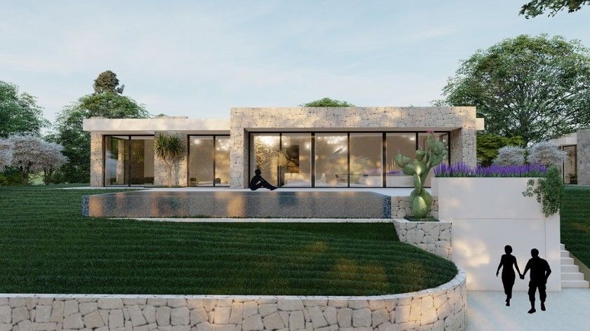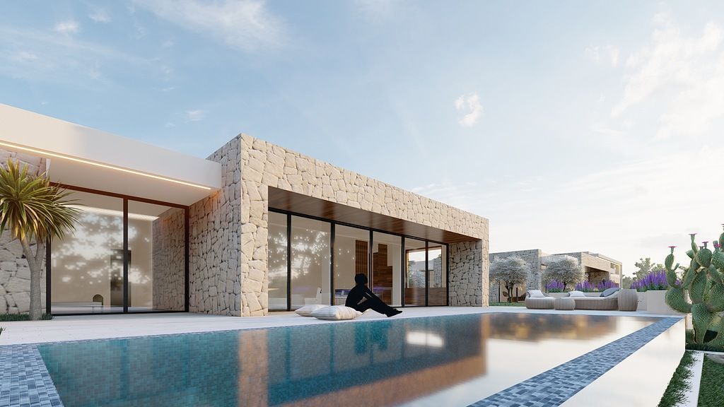 Eksterijer vile uključuje infinity bazen dimenzija 10 x 4 m sa pogledom na more, terase obložene prirodnim kamenom i panoramske prozore izrađene od trostrukog aluminijumskog profila renomiranog italijanskog proizvođača.