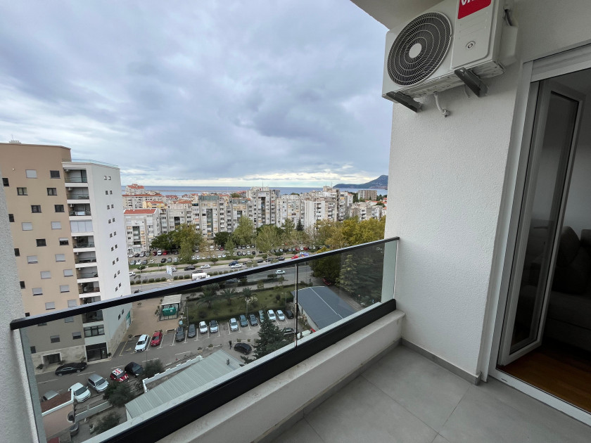 Opis: Izdajem stan od 46m2 u Baru kod Pijace na 10om spratu u novoj zgradi sa dva lifta. Stan je moderno namjesten i izdaje se kao na slikama. Ima jednu spavacu sobu, jedno kupatilo, prostran balkon i otvoren dnevni boravak sa kuhinjom i trpezarijom. Stan gleda na zapadnu stranu i ima prelijep pogled na more i zalazak sunca. Topao je zimi.