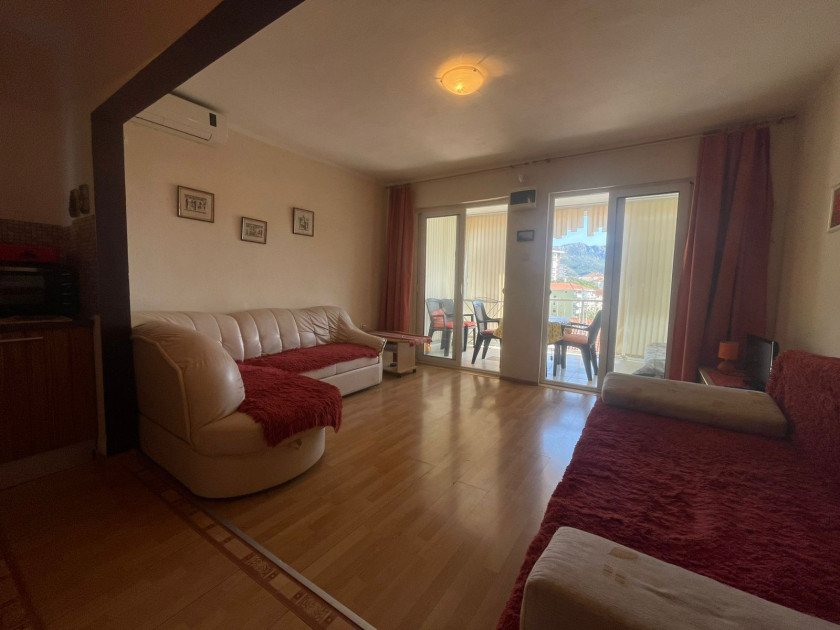 Opis: Продажа Бечичи № 7396. Эксклюзивное предложение! Квартира с 2 спальнями, 65 м2, 1 высокий этаж без лифта, Бечичи, Борети. Квартира сухая, пол - паркет. Полностью меблирована и оснащена бытовой техникой. С террасы вид на горы и частично на море. Полностью готова к проживанию или для сдачи в аренду. Без дополнительных вложений!