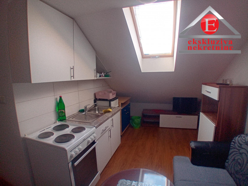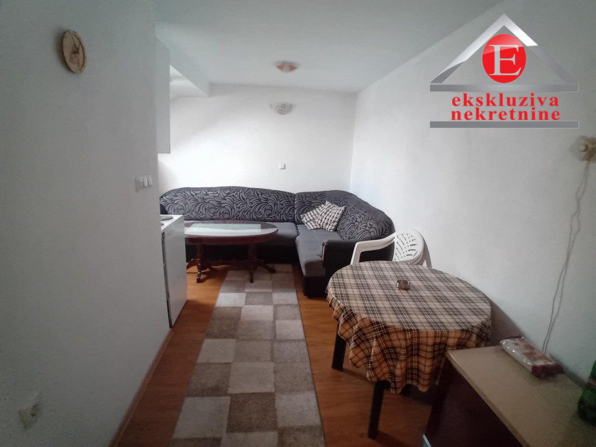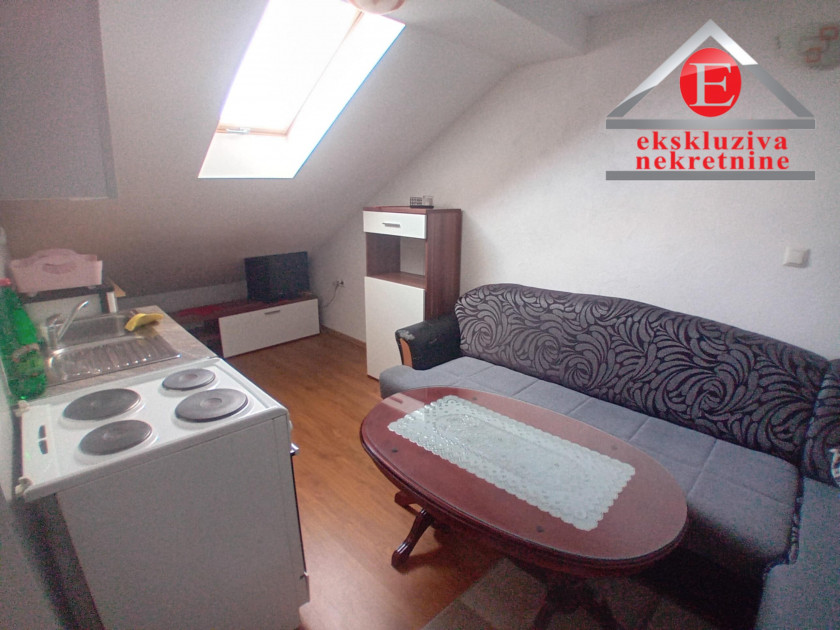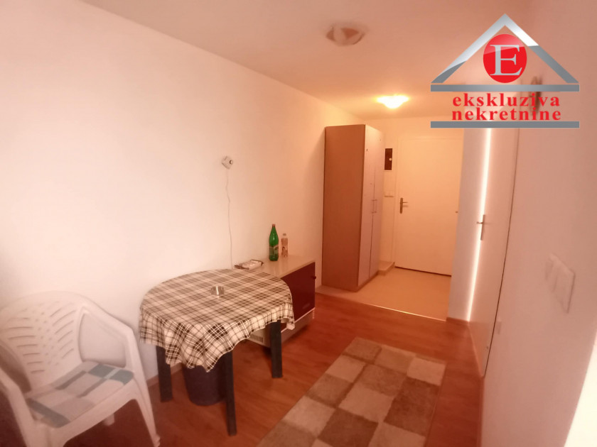 Opis: Namješten jednosoban stan površine 36 m2. Sastoji se od dnevnog boravka sa kuhinjom i trpezarijom, spavaće sobe, hodnika i kupatila. Opremljen je drvenom stolarijom, laminatima, keramikom i sanitarijama. Prodaje se kompletno namještena.