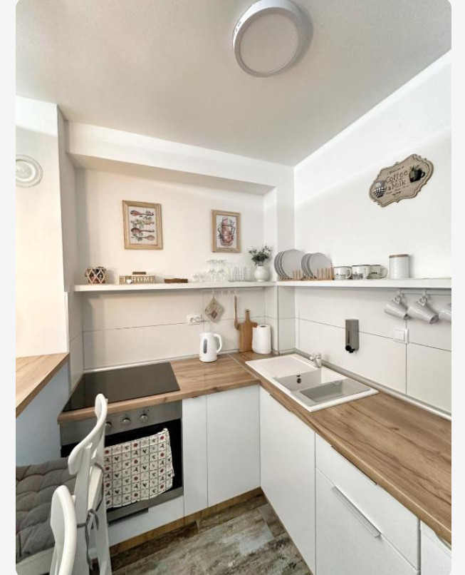 - Potpuno opremljenu kuhinju (frižider, kuvalo, pribor)