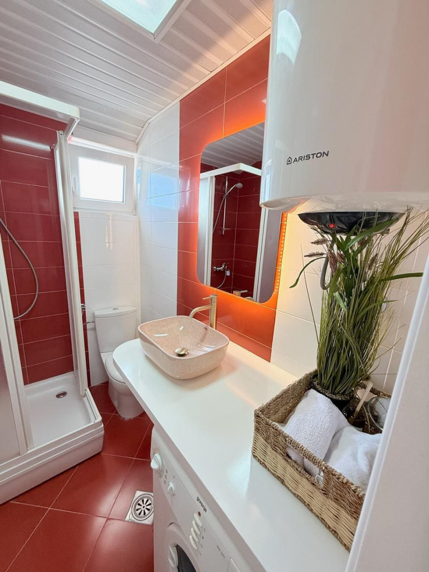 Unatoč maloj veličini – 26 m² – raspored je vrlo praktičan. Stan se sastoji od dnevnog boravka, spavaće sobe i kupaonice. Terasa ima pogled na more. Novi namještaj i uređaji.