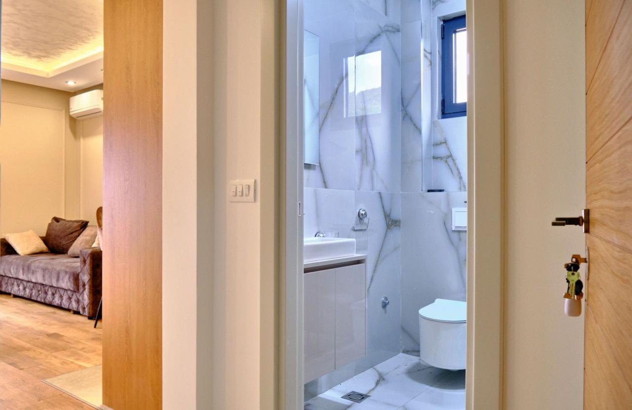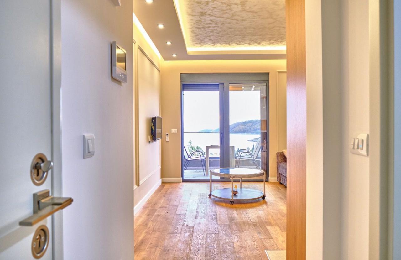 ulazni hodnik, kupaonica, kuhinja, blagovaonica i dnevni boravak s pogledom na more. Spavaća soba s terasom. Pogled na more.
