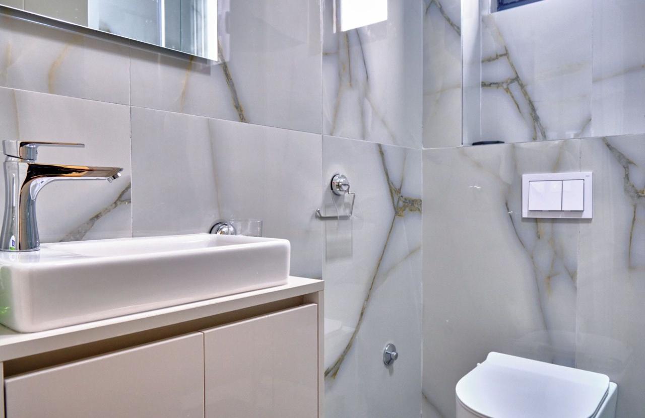 ulazni hodnik, kupaonica, kuhinja, blagovaonica i dnevni boravak s pogledom na more. Spavaća soba s terasom. Pogled na more.