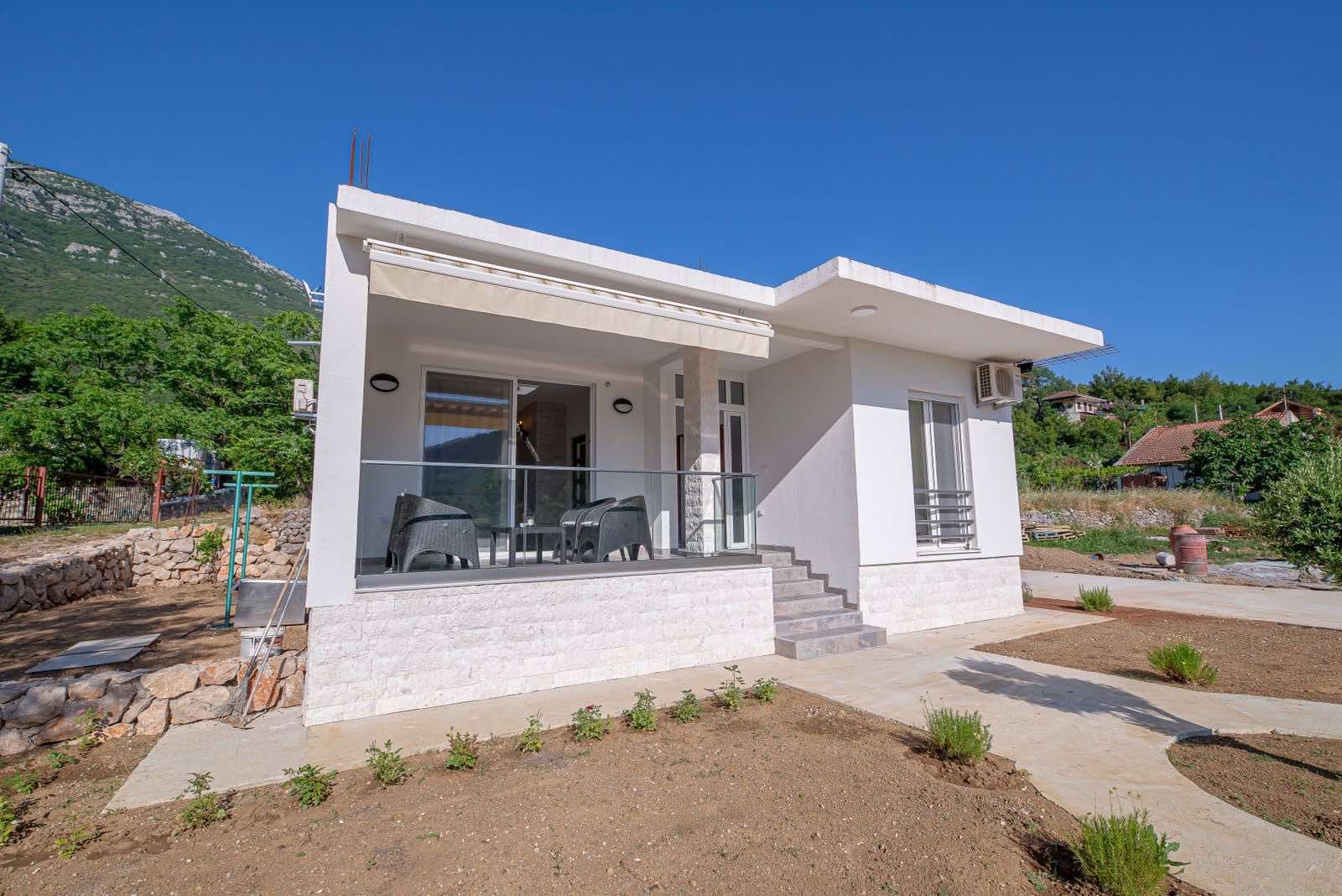 Plac ima ukupno 1,703m2, a kuća se prostire na 100m2. Kuća je potpuno nova i opremljena novim nameštajem.