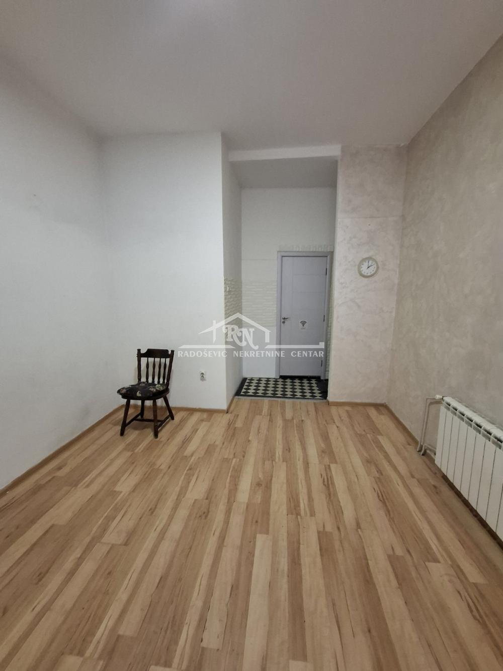 Uknjižena na 22m2, u visokom prizemlju zgrade (15 stepenika od ulaza u zgradu), sastoji se ulaznog hodnika koji ima prozor, centralne prostorije sa čajnom kuhinjom i kupatila sa prirodnom ventilacijom.