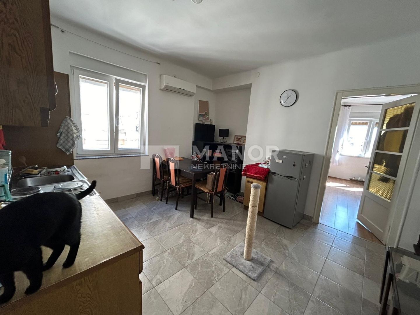 Stan se sastoji od hodnika, kuhinje s blagovaonicom i dnevnim boravkom, prostrane spavaće sobe i kupaonice. Stan se nalazi svega sto metara od Korza. Odlična nekretnina za investiciju.