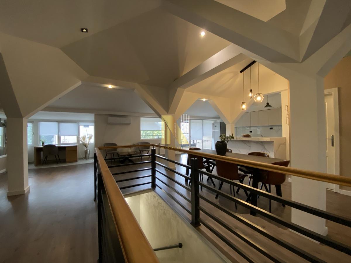 - Open space dnevni boravak sa trpezarijom i kuhinjom, 3 spavaće sobe, dodatna soba za garderober, 2 terase, kupatilo, toalet, hodnik