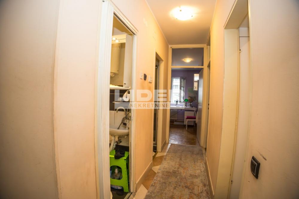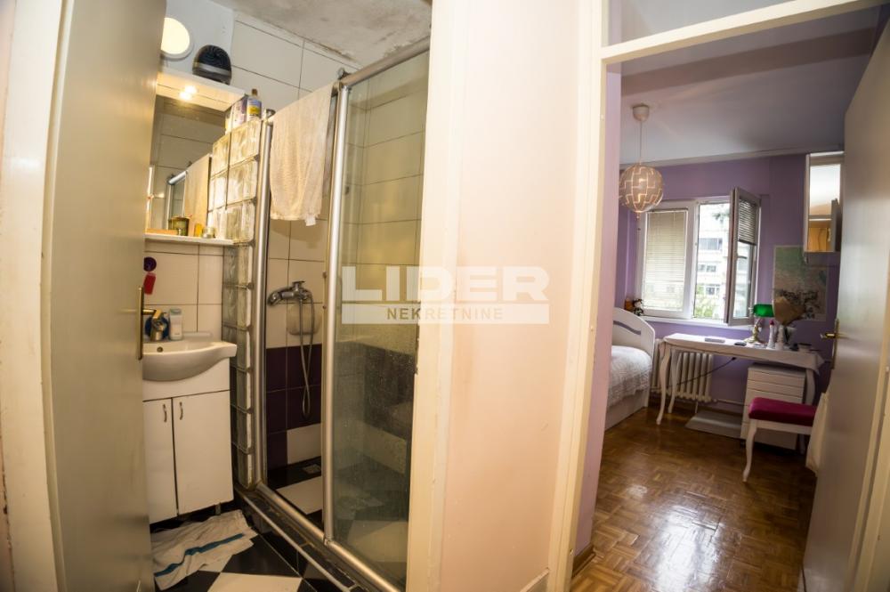 Opis: U urednoj zgradi sa liftom i centralnim grejanjem, stan bez većih ulaganja. Nema prolaznih soba. Odvojen spavaći blok, dva mokra čvora, zastakljena lođa. Okrenut ka zelenilu, bez buke. Javni prevoz udaljen 100m
