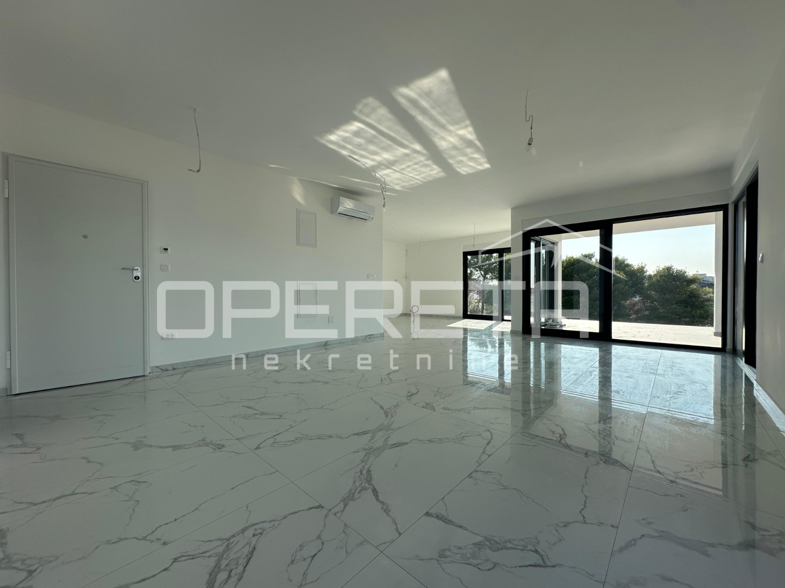 Opis: Penthouse novogradanja 160 m2, pogled more, terasa, otok ČiovoU modernoj novogradnji u Okrugu Gornjem, na drugom katu, nalazi se trosobni penthouse koji se sastoji od 2 etaže. Drugu etažu čini krovna terasa koja pripada isključivo ovom stanu, što uz visinu položaja donosi mir i dodatnu razinu privatnosti.Stambeni dio sastoji se od jasno organiziranog dnevnog dijela otvorenog koncepta. Dnevni boravak logično je povezan s kuhinjom i blagovaonicom, a iz njega se izlazi na veći balkon/terasu površine 17,43 m². Privatni dio čine 3 spavaće sobe i 3 pripadajuće suvremeno uređene kupaonice s toaletom. Raspored je postavljen tako da je dnevna i noćna zona dobro odvojena, uz dovoljno mjesta za ugradbene ormare i logičan tok kretanja u svakodnevici. Dvije od 3 sobe s kupaonicama imaju izlaz na dodatni balkon. Oba balkona pružaju pogled na more. Velike staklene stijene osiguravaju obilje prirodnog svjetla i pogled prema moru i iz dnevne zone.Krovna terasa na trećoj etaži ključni je vanjski prostor stana. Bruto površina iznosi 144,10 m²....