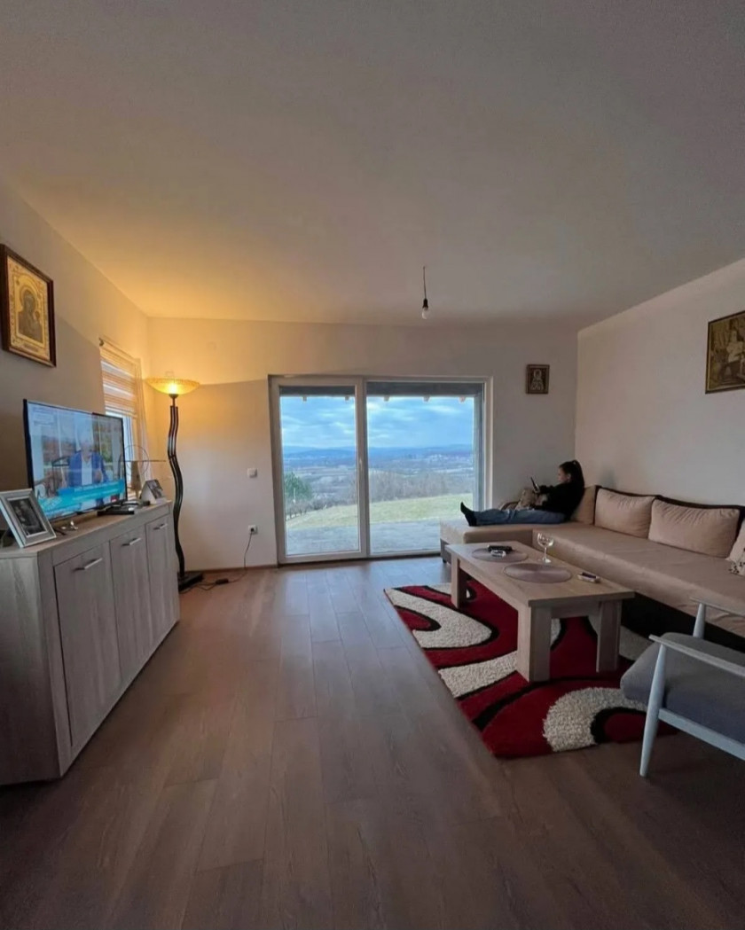 Opis: Prodajem novoizgrađenu trosobnu kuću u potpunosti nameštenu, sa prelepim pogledom na grad Čačak i okolinu: 100 m² i 20 ari placa, u centru sela Mojsinje kod Čačka (u blizini škole, crkve i trgovine), sa svim priključcima (voda, struja, gas, kanalizacija).