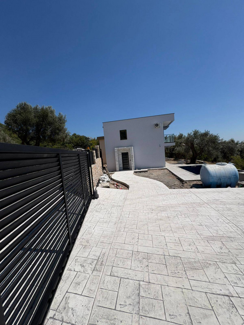 У нас участок 500м2, бассейн переливного типа и захватывающий вид на море.