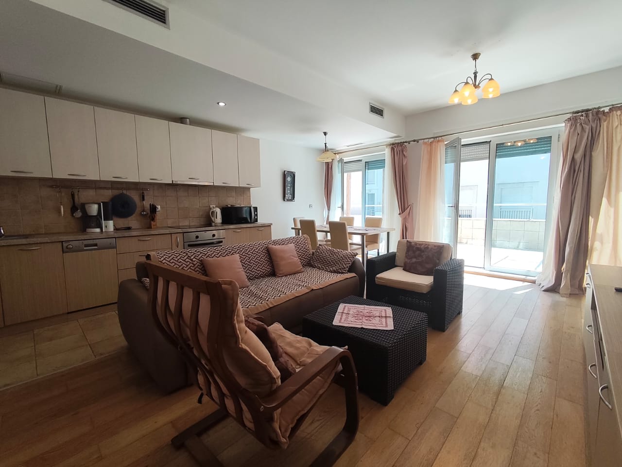 Opis: Na prodaju dvosoban stan površine 75 m² + 35 m² terasa, smješten na prizemlju ekskluzivnog kompleksa Buena Vista u Dobroti.