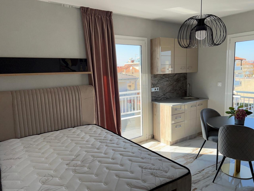 Opis: 250 metara, udaljeno od mora,potpuno renovirana studija potpuno namešteni sa belom tehnikom, televizorima i klima uređajima ili bez nameštaja sa kuhinjom i kompletno nameštenom kupatilom, u najlepsem delu, Olympic Biča,