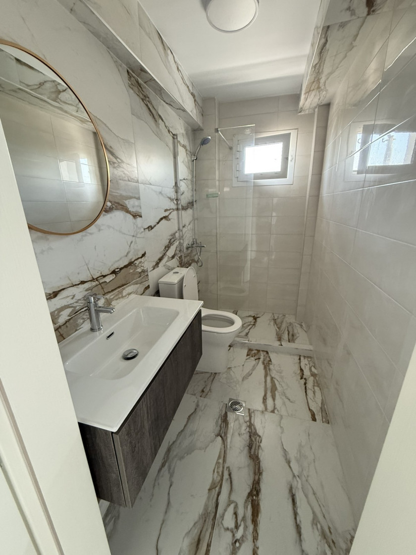 Sve u kupatilu italijansko, šolja , lavabo, ogledalo sa ormarićem, tuš po meri sa jednim staklom.