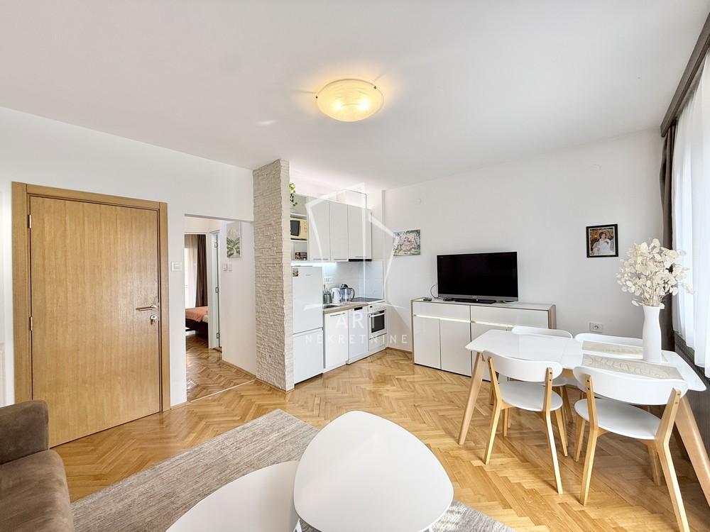 Opis: Lepo sređen dvosoban stan u mirnoj i traženoj ulici – Podravska, na prvom spratu stambene zgrade.