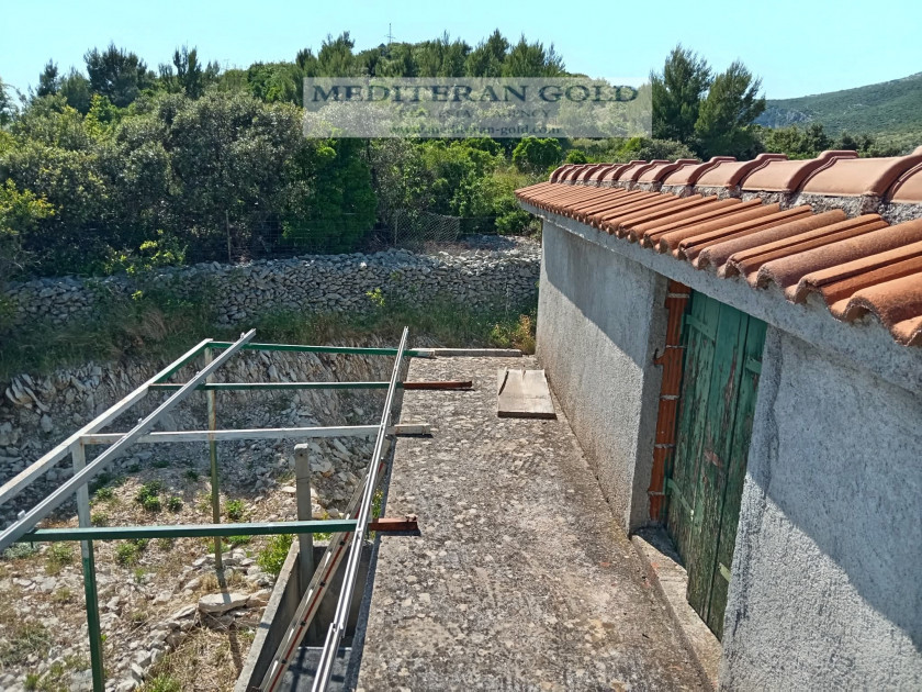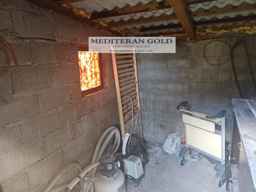 Opis: Kuća za prodaju, Kaštel Štafilić. Kuća od 34m2, sastoji se od sobe, sanitarnog čvora kuhinje s dnevnim dijelom, terase i malog potkrovlja koje služi kao spremište, te pomoćni objekt od 9m2, zemljište od 1.457m2. Kuća ima gustirnu za vodu, nema priključak električne energije. Asfaltni put 500m od kuće, sam prilaz je makadamski put, lijep pogled, od mora udaljeno 2.017m. Odmah je dostupno. Nije moguća izgradnja većeg objekta. Ova mala kućica nudi potpuni mir i privatnost, te predstavlja idealnu priliku za vikendicu, ljubitelje prirode i život u skladu s prirodom. Agencija naplaćuje proviziju.
