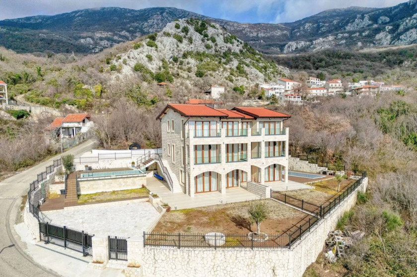 Prodaju se dvije susjedne vile u Kuljace nad Przno, u blizini manastira Duljevo, idealne za velike porodice. Prva parcela je površine 850 m2 sa trospratnom kućom ukupne površine 237 m2 i teretanom od 30 m2 (nije uknjižena); druga parcela je površine 750 m2 sa trospratnom kućom ukupne površine 237 m2 i teretanom od 20 m2 (nije uknjižena). Svaka vila ima privatni bazen, 3 spavaće sobe, 3 kupatila, 1 toalet, 2 kuhinje, 2 trpezarije, 2 dnevna boravka, vešeraj i privatno dvorište. Cijena za dvije vile je 1.600.000 €.