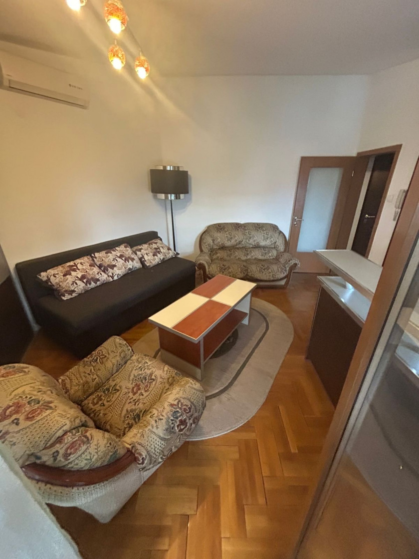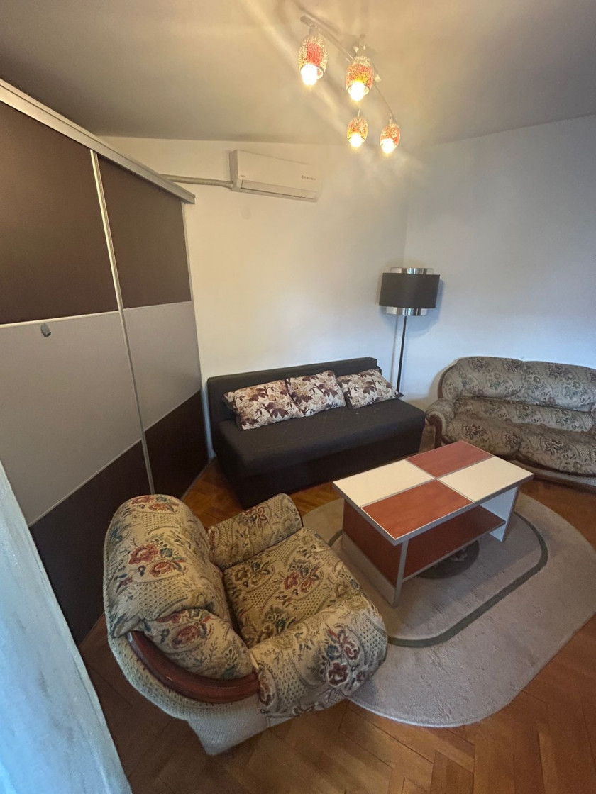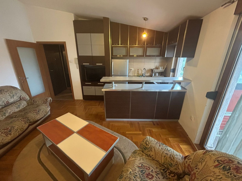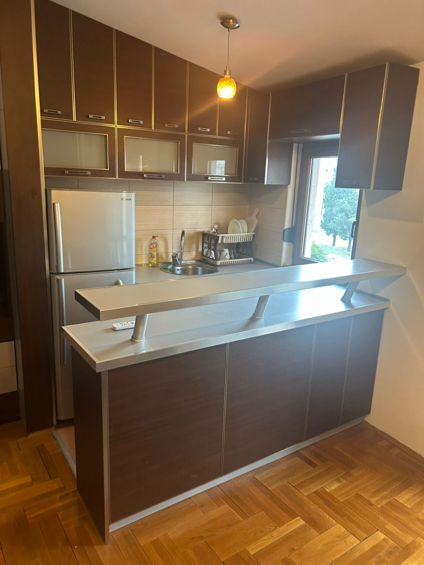 Garsonjera je povrsine 35m2 i pozcionirana je trecem spratu. Izdaje se komoletno opremljena kao na slikama.