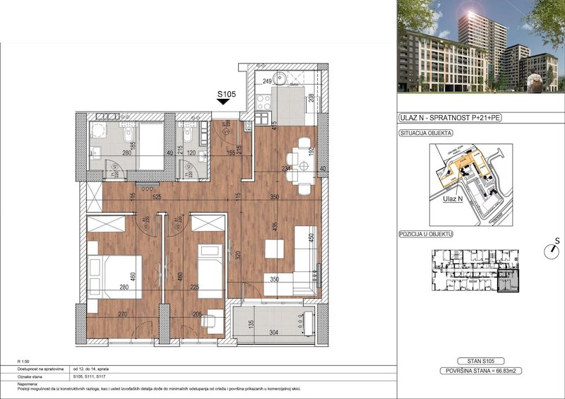 Opis: Prodaje se trosoban stan površine 66,83m² u modernom stambenom naselju