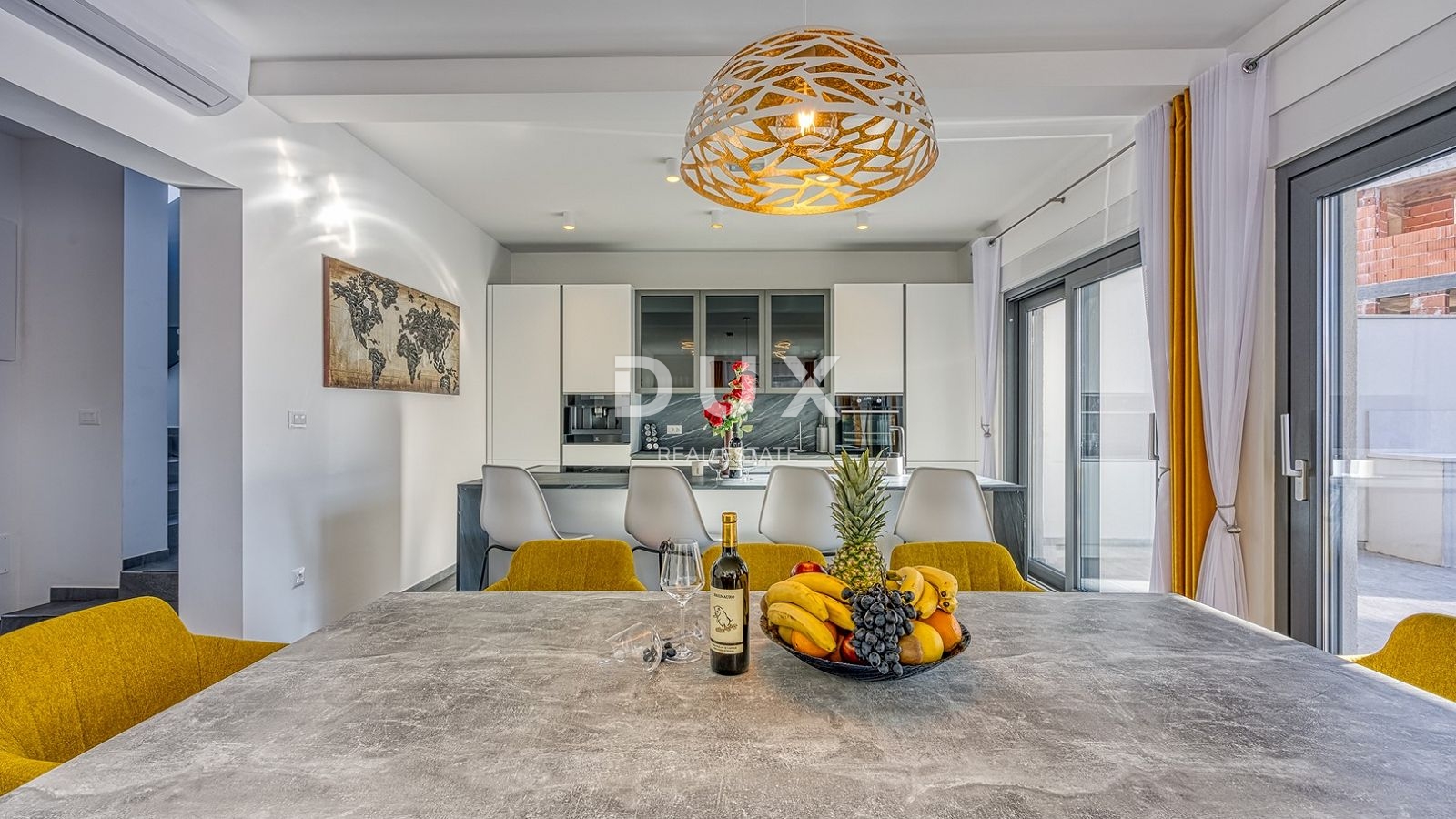 U mirnom rezidencijalnom naselju u blizini Poreča, svega 1300 metara od mora, smjestila se moderno dizajnirana dvojna kuća građena 2023. godine. Spoj suvremene arhitekture i funkcionalnog rasporeda prostora čini ovu nekretninu idealnom za luksuzni turistički najam, ali i kao privatnu oazu za bijeg od svakodnevice.