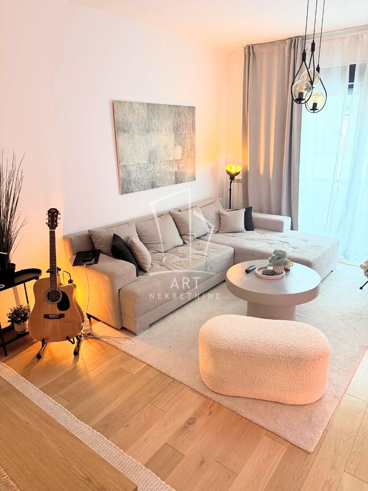 Opis: Lux Smart Home sa parking mestom. Izdaje se potpuno nov dvosoban ,namešten stan,u novoj pametnoj zgradi.Poseduje dnevnu sobu,spavaću sobu,kuhinju,kupatilo,hodnik i terasu.Nalazi se na prvom spratu od ukupno četiri sprata,okrenut je ka dvorištu.Poseduje sve aparate,alu stolariju,hrastov parket,Ima svoje parking mesto. Moze biti PP ili se koristiti za život u njemu.Ima alarm u stanu,video nadzor,interfon,internet,klimu,centralno grejanje po utrosku,lift. Režije su vrlo male.Depozit obavezan.