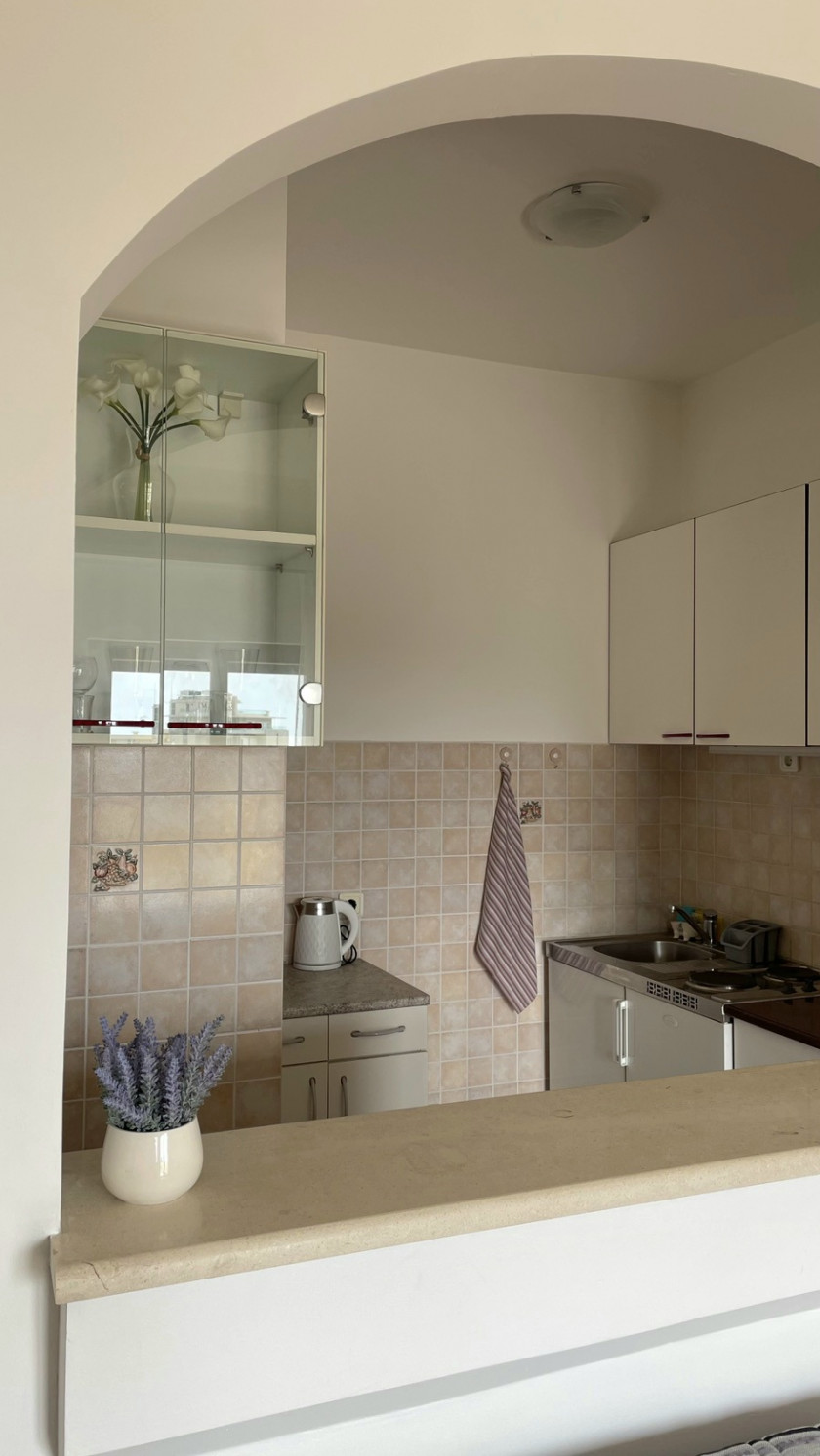 A 34m² studio apartment with a stunning sea view, just 350m from the beach.