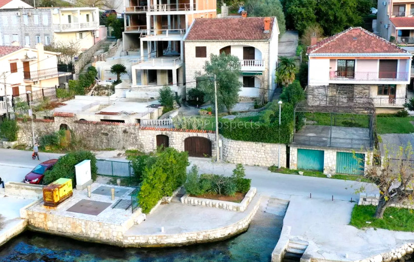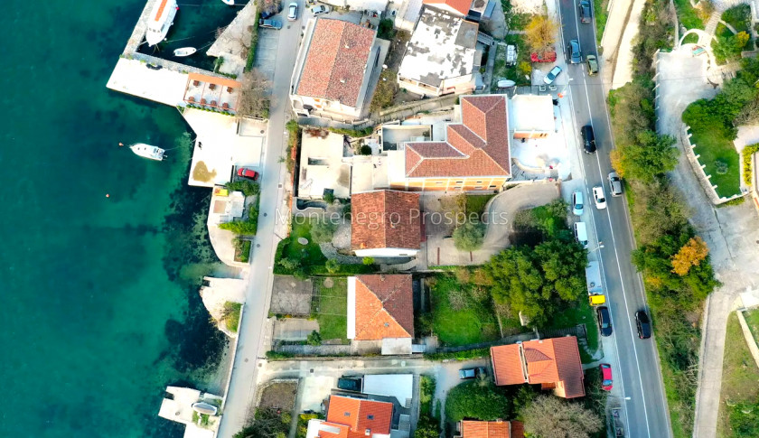 The house is located on the first line in Dobrota. It is next to the waterfront with an area of 674 sqm. The house itself has an area of 175 sqm.
