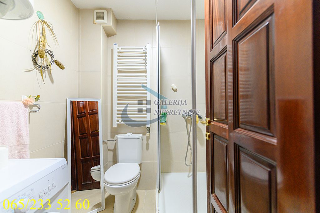 U prilici smo da Vam ponudimo dvoiposoban stan na visokom prizemlju od tri, kvalitetne zgrade sa pikovanom fasadom, izgrađene 2015 god. Zgrada sa samo šest stanova, uvučena je tri metara od trotaoara i zaklonjena borovima. Stan je dvostrano orijentisan, funkcionalnog rasporeda prostorija tipičnog za noviju gradnju, svetao, sunčan i bez buke. Odlično organizovan prostor koji je osmišljen da se iskoristi maksimum postojeće kvadrature. Sve prostorije su komforne, spoljna PVC stolarija a unutrasnja od punog drveta, hrastov parket, blindirana vrata... Veća terasa od 14m2 orijentisana ka dvorišnoj strani a koja nije u knjižnoj kvadraturi, idealna je za uživanje. Visina visokog prizemlja je u nivou prvog sprata. Stan u odličnom stanju i ne zahteva dodatne investicije. Retko u ponudi, za svaku preporuku.