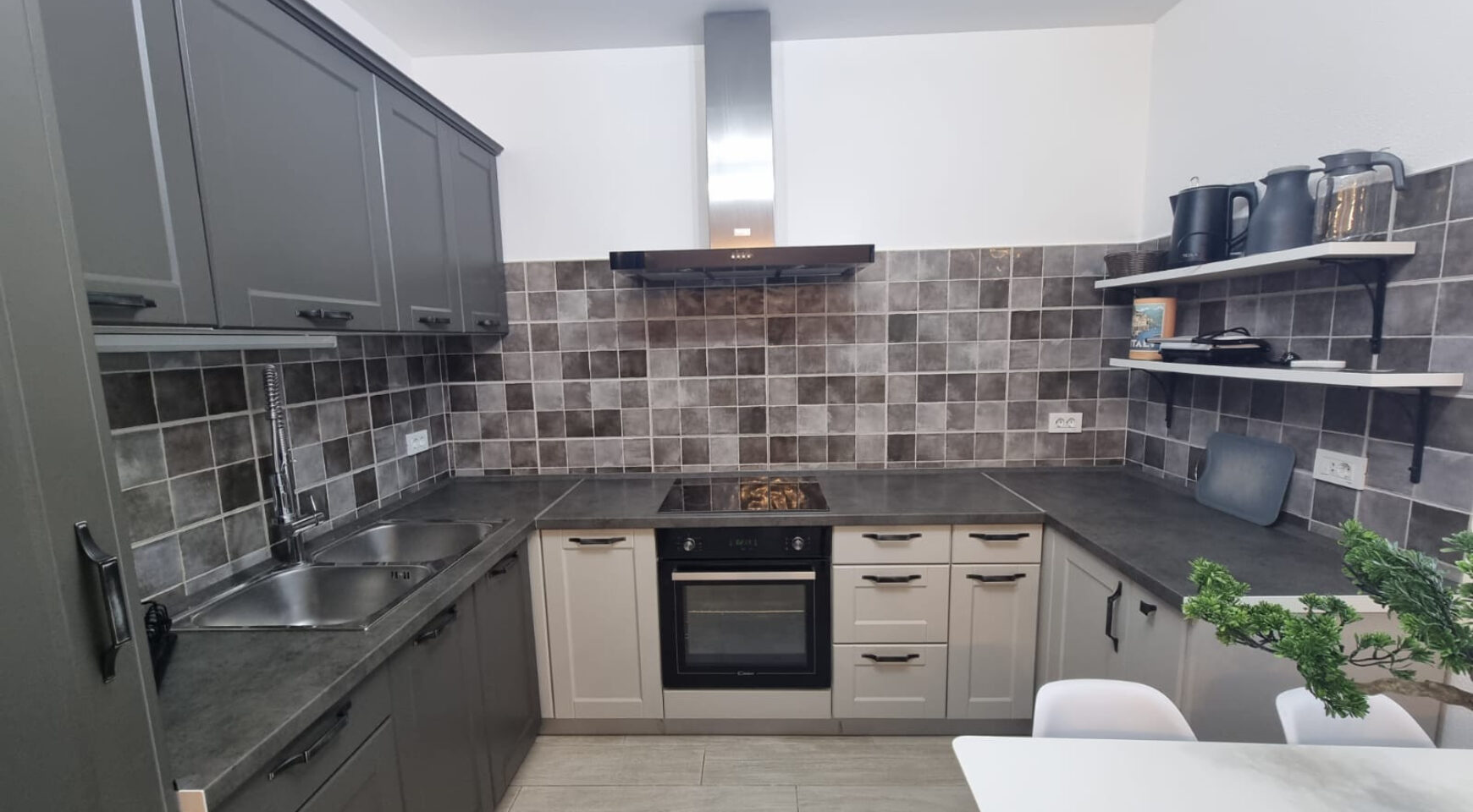Kuća je idealna za letnji biznis izdavanja. Dva stana na drugom spratu mogu se spojiti u jedan stan.