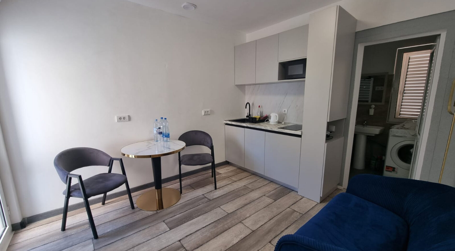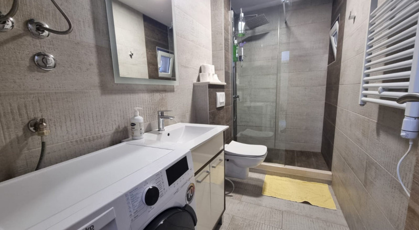 U prizemlju se nalazi stan sa dve spavaće sobe, dnevna soba sa odvojenom kuhinjom, ostava i prostrana terasa. Unutrašnje stepenište vodi do drugog nivoa. Na drugom nivou se nalaze dva garsonjera.