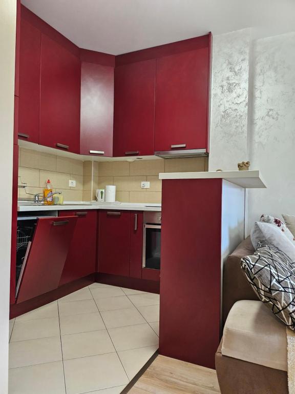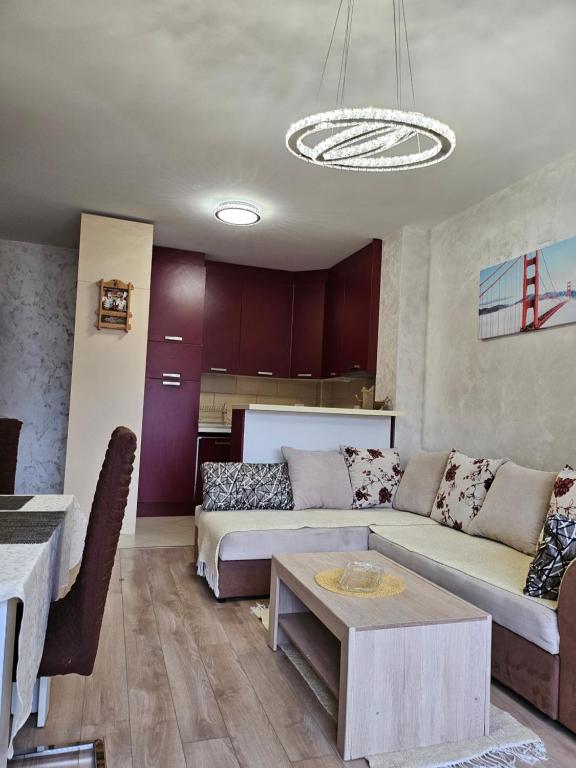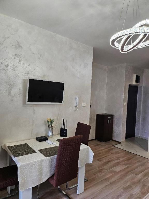 Stan je komplet opremljen kuhinjom,kuhinjskim elementima,tv-e klima,tv internet,masina za sudove,masina za ves, dok u spavacoj sobi fr lezaj.