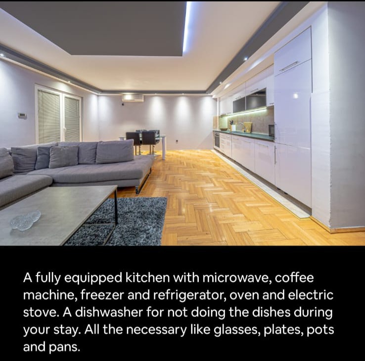 Prostran i udoban stan površine 85 m², potpuno namešten i opremljen svim što je potrebno za prijatan boravak.