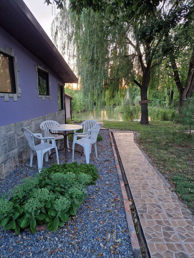 Kuća je veoma svetla i prostrana. Okružena je mini parkom - višedecenijskim četinarima i listopadnim drvećem. Nalazi se u prvoj zoni grada, a pruža kompletan osećaj života na selu, u prirodi. Sjajna je za svakodnevni odmor i uživanje u ribolovu. Predstavlja idealan spoj kuće - vikendice kraj vode.