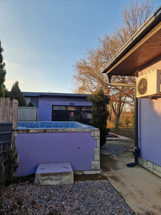 Tik pored terase je nadzemni bazen od 17 m3 sa filter pumpom i merdevinama.