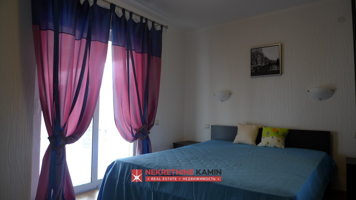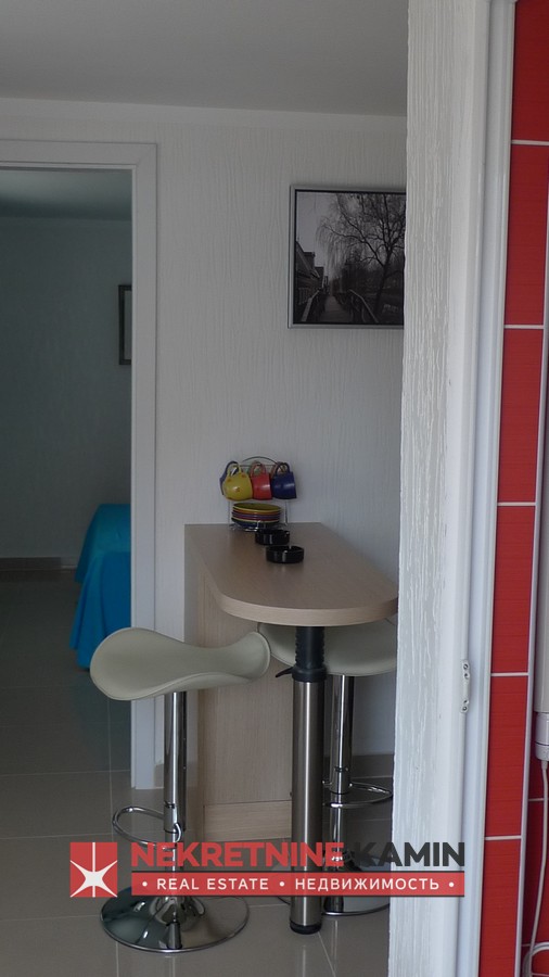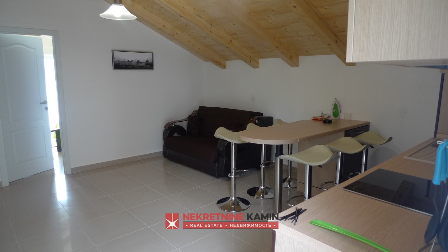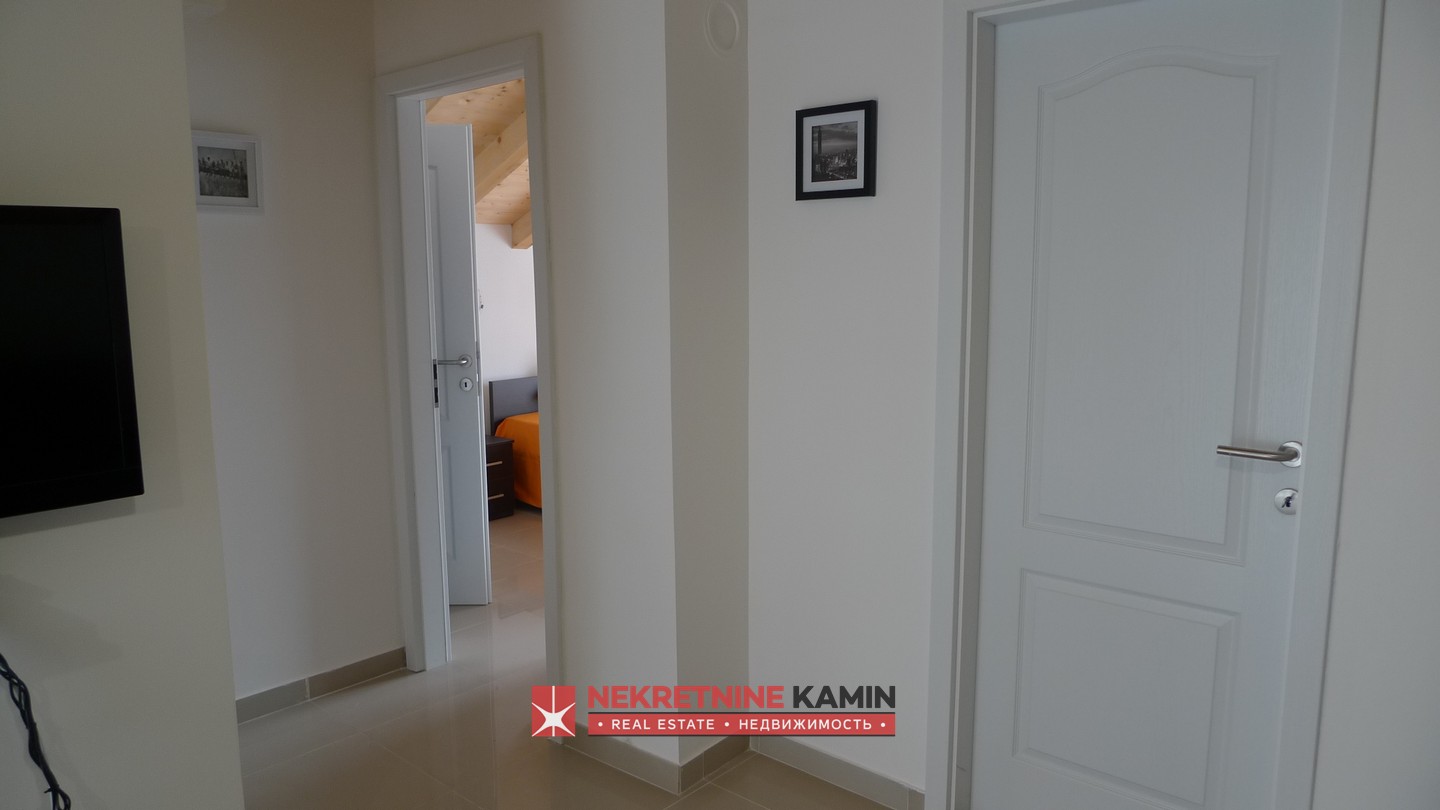 Iz soba se pruža pogled na more. Tu je i velika terasa sa pogledom na more.Stepenice vode do potkrovlja gdje je dnevni boravak sa kuhinjom i trpezarijom, dvije spavaće sobe, dva kupatila i velika terasa sa pogledom na more.
