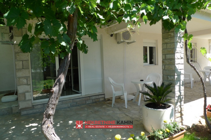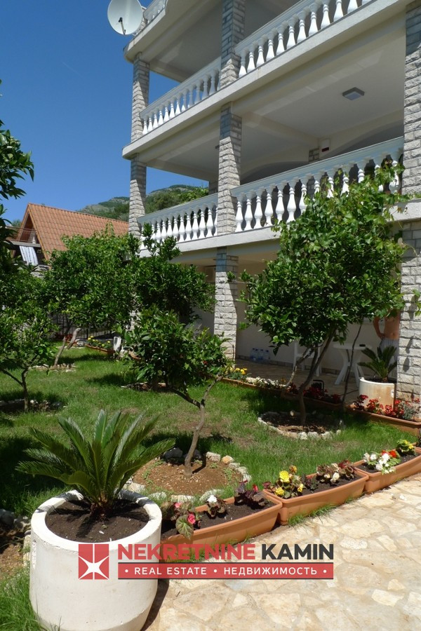 Plac je kultivisan zelenilom i južnim voćem.Kuća se sastoji od prizemlja, sprata i potkrovlja