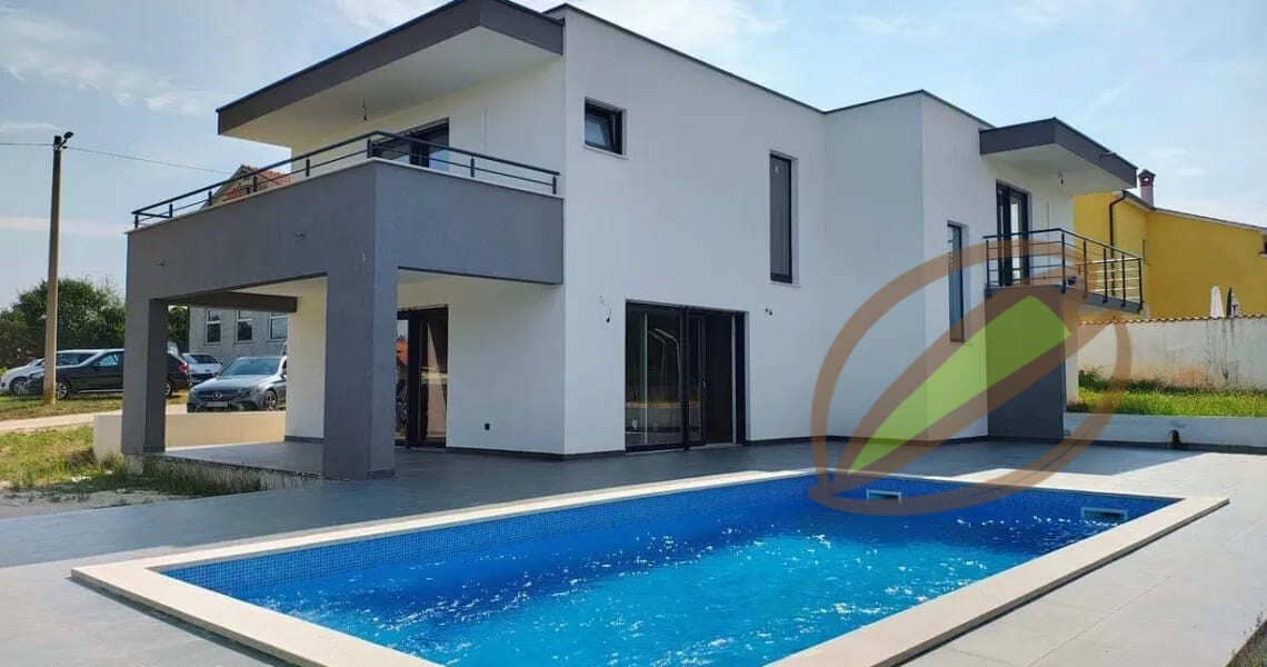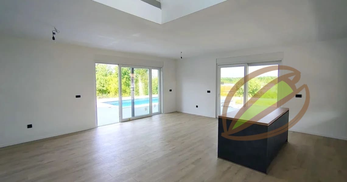Smještena u mirnom okruženju, ova novogradnja oduševit će vas prostranim dnevnim boravkom koji se otvara na natkrivenu terasu i bazen. Tri elegantne spavaće sobe, svaka sa svojom en-suite kupaonicom, pružaju maksimalnu udobnost. Dnevni dio vile u prizemlju uz prostrani dnevni boravak sadrži kuhinju s blagovaonicom, toalet te ostavu/vešeraj. 3 spavaće sobe na katu uz kupatilo i garderobu svaka raspolaže i balkonom....