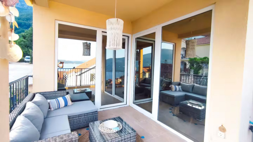 - velike terase sa baštenskom ugaonom garniturom i prelijepim pogledom na more.