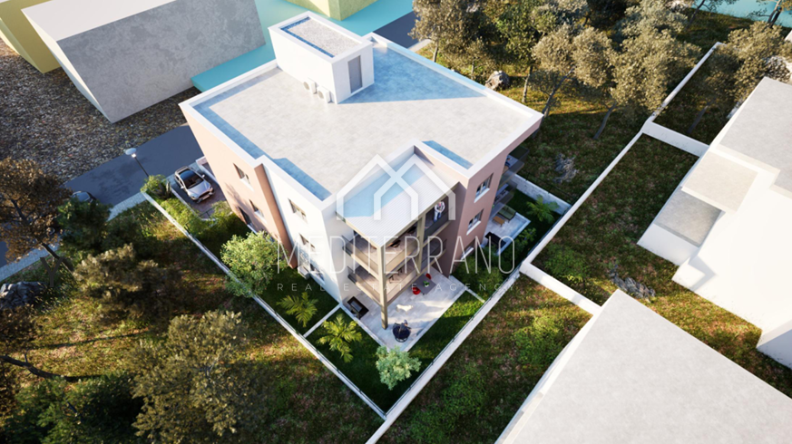 Opis: Prodaje se dvosoban stan na odličnoj lokaciji u šibenskom naselju Vidici. Smješten je na prvom katu manje stambene zgrade i ukupne je stambene površine 57,88 m². Stan se sastoji od ulaznog hodnika, kupaonice, dvije spavaće sobe te kuhinje povezane s blagovaonicom i dnevnim boravkom iz kojeg se izlazi na prostranu, polunatkrivenu terasu površine 10,37 m². Uz stan dolazi i jedno vanjsko parkirno mjesto, što dodatno podiže razinu komfora.