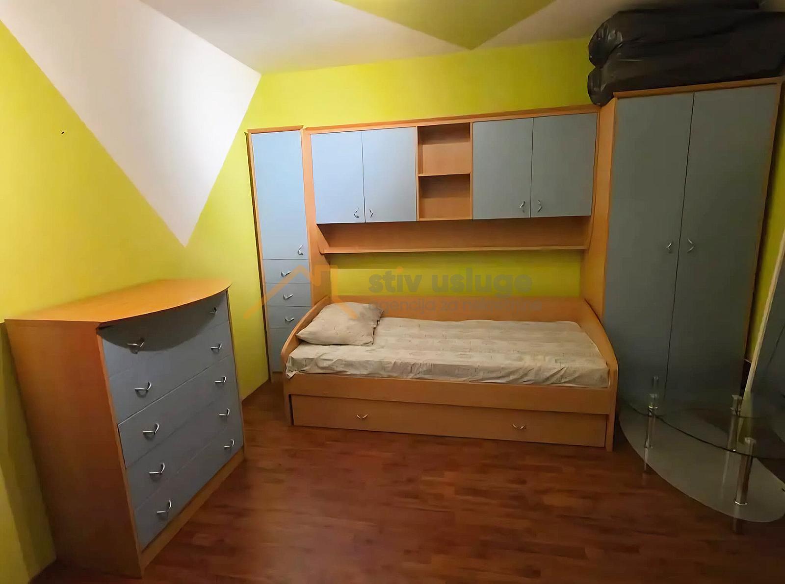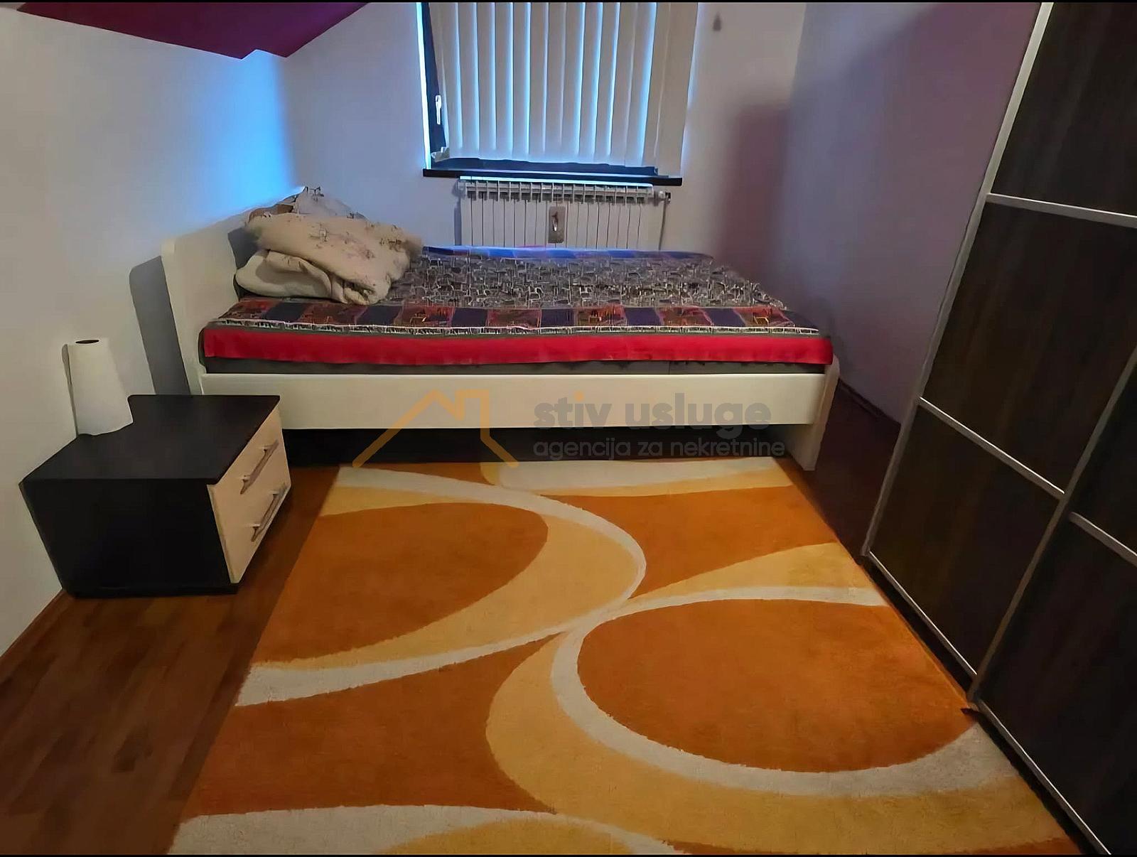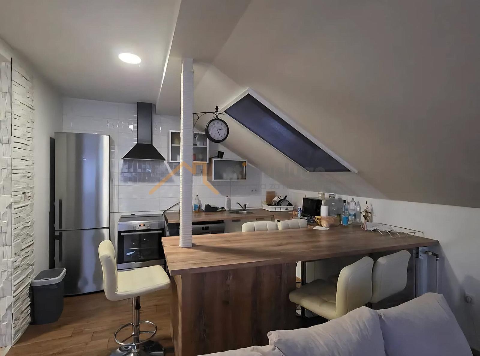 Stan se nalazi u potkrovlju zgrade i sastoji se od dnevnog boravka, kuhinje, blagovaonice, 2 (dvije) spavaće sobe, kupaonice sa wc-om, hodnika i tavana. Stan kompletno adaptiran 2018 godine, te se prodaje s namještajem. Orijentacija stana sjever/jug, grijanje etažno centralno plinsko. Stan nema svoj parking, ali se odmah do zgrade nalazi besplatni javni parking.