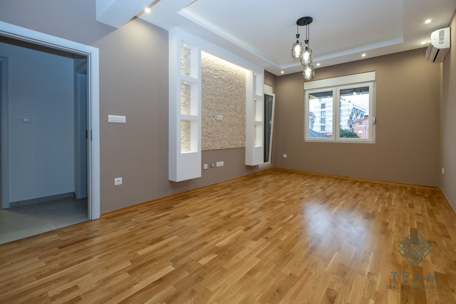 Opis: Na prodaju jednosoban, neuseljivan stan u novoizgradjenoj zgradi Eurozox-a na Zabjelu, u ulici Iva Vizina. Povrsine 46m² , pozicioniran na prvom spratu, istocno orijentisan. Struktura - ulazni hodnik, dnevni boravak sa kuhinjom i trpezarijom, spavaca soba, kupatilo, terasa. Opremljen je ugradnom radjenom kuhinjom od medijapana, sankom, dekorativnim kamenom i rasvjetom.
