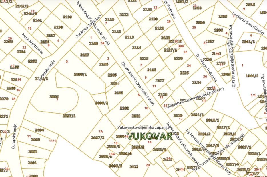 Vukovar, građevinsko zemljište 399 m2 u baroknoj jezgri grada