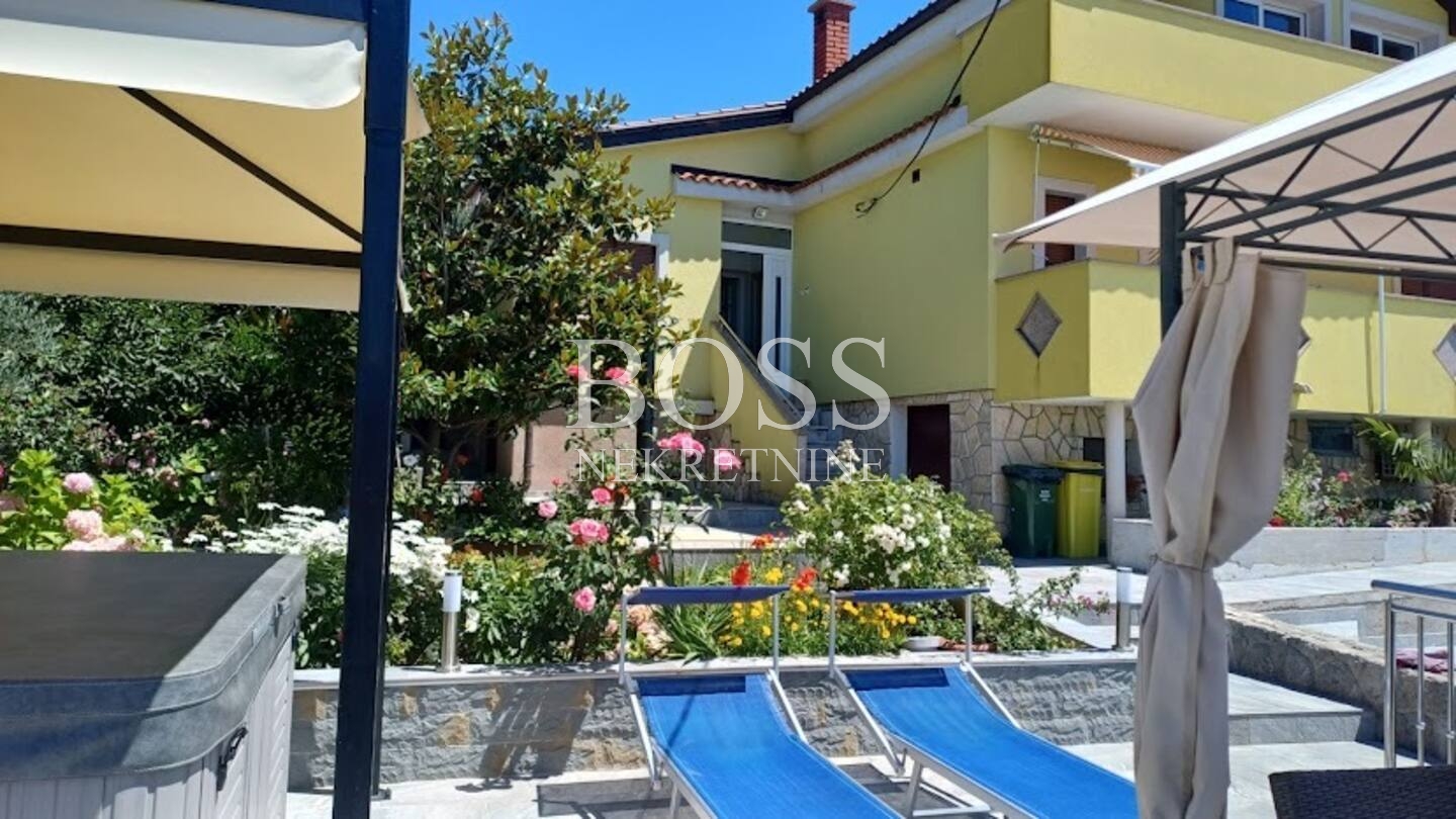 Opis: Pulac, u ponudi imamo odličnu kuću koja se sastoji od suterena, visokog prizemlja i visokog potkrovlja. U suterenu se nalaze dvije konobe i spremište, u visokom prizemlju su dva kompletno uređena i adaptirana stana, 3S+DB - 90m2, 1S+DB - 40m2. Stan u visokom potkrovlju površine 100m2 ima zaseban ulaz, trenutno je u roh-bau fazi, a svi stanovi imaju balkone s panoramskim pogledom na more. Lijepo uređena okućnica na kojoj se nalazi bazen, jacuzzi, ljetna kuhinja, terasa, roštilj, vrt i tri garaže. Kuća je adaptirana prije 10 godina, ugrađena PVC stolarija, novi krov, termo fasada, stiropor 10cm, vrlo kvalitetni materijali. Uredna vlasnička dokumentacija, uporabna dozvola. Odlična lokacija. Prilika! Boss, kontakt: 091/379-1010 Dragan
