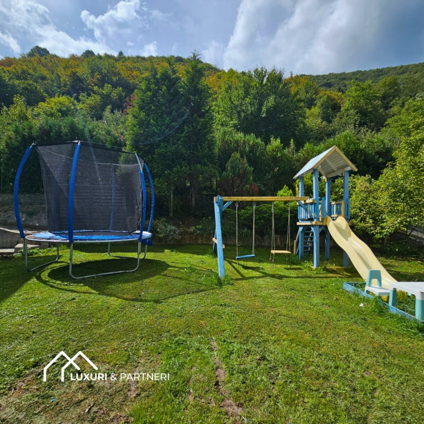 Kuce se nalaze na parceli velicine cca 1100m2, sa lijepo uredjenim dvoristem,sve je u ogradi i sa velikom ulaznom kapijom na daljinsko upravljanje. Na parceli se nalazi parking za vise automobila, zelena povrsina, zidani rostilj sa sadrvanom,dijelom za odmor i rekreaciju, a granici sa velikim vocnjakom u vlasnistvu opcine ,koji se nesmetano moze koristiti.