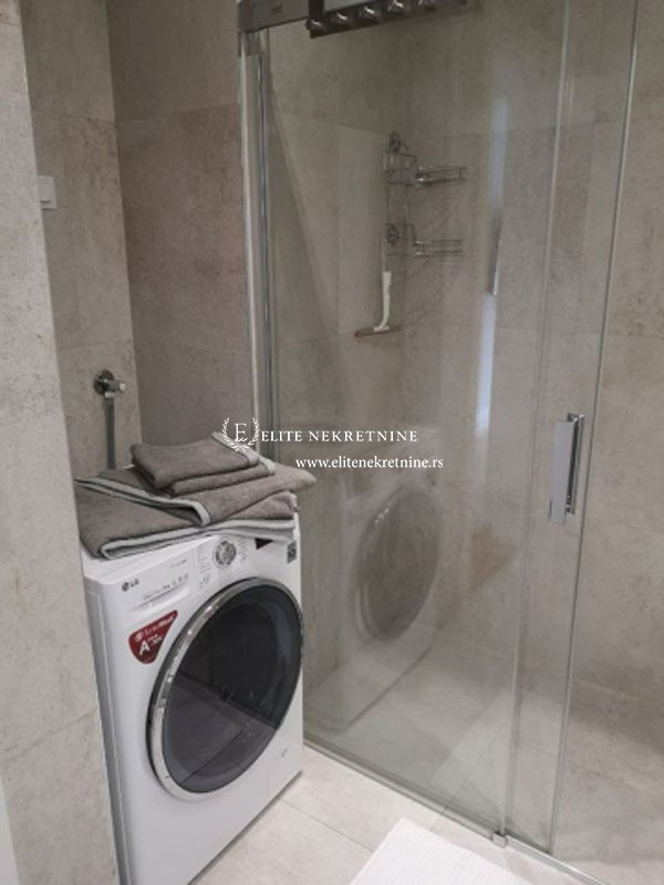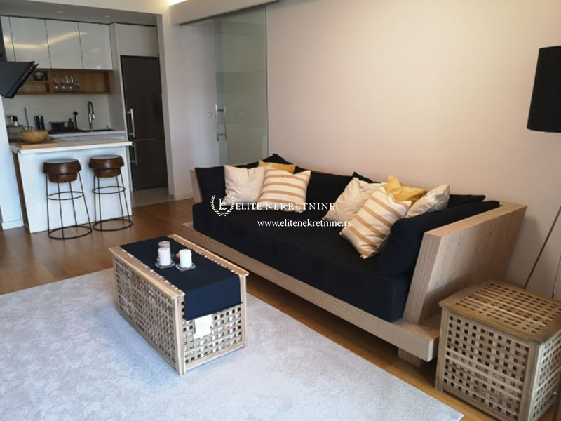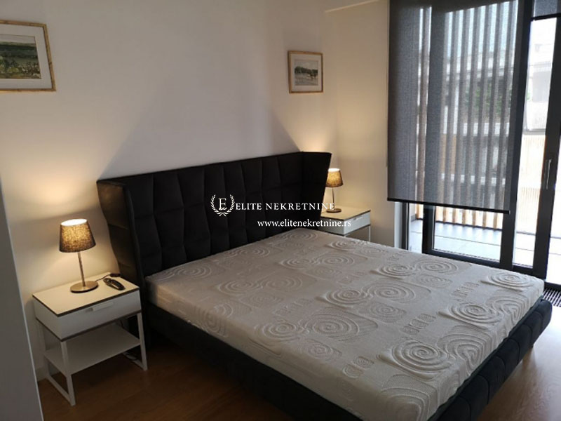 Opis: Dvosoban luksuzno namešten stan u okviru kompleksa West 65. Garažno mesto u sklopu zgrade uključeno u cenu zakupa.