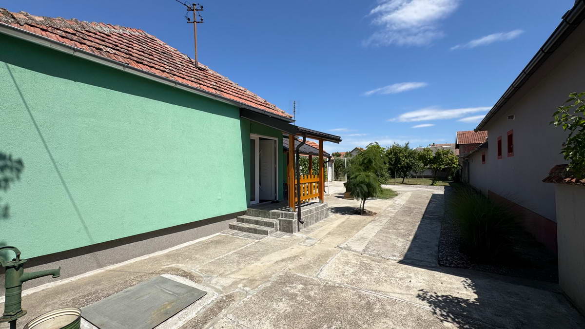 Opis: Ečka - dvoiposobna kuća od čvrstog materijala površine 80m2 + pomoćne prostorije na placu površine 7,5 ara sa kolskim ulazom i garažom. Demit fasada 10cm, pvc stolarija, termoizolovana tavanica, novo kupatilo sa novim instalacijama, centralno grejanje na gas, trofazna struja, kanalizacija. Uknjižena 1/1. Prodaje se sa nameštajem. Moguća kupovina putem stambenog kredita.