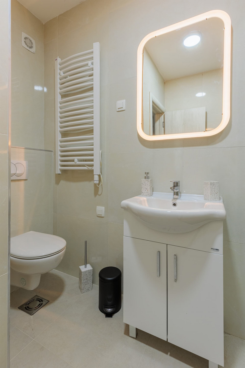 Svetao jednosoban stan u modernoj stambenoj zgradi sa bazenom i liftom. Stan ima funkcionalan raspored, potpuno je namješten i nudi predivan panoramski pogled sa terase i spavaće sobe. Idealna nekretnina za udoban život ili kao investicija za izdavanje u jednom od najpoželjnijih djelova Tivta.