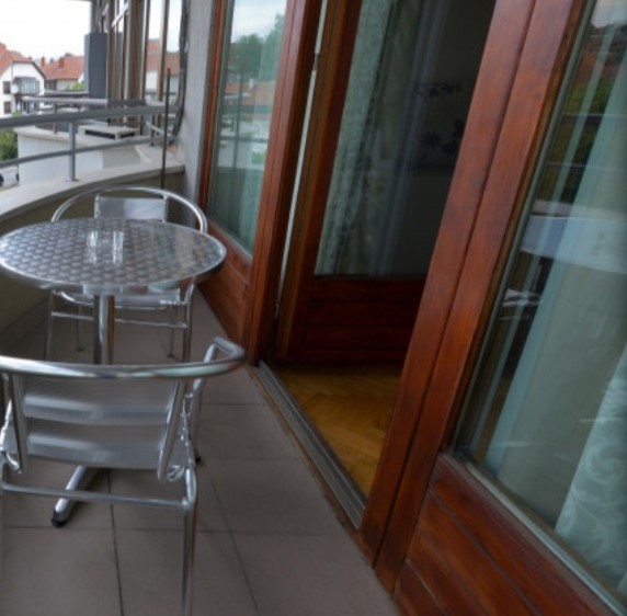 Sastoji se od ulaznog hodnika kuhinje u sklopu dnrvne sobe kao i manje spavace sobe.kupatilom i prelepom terasom sa pogledom na centar grada.